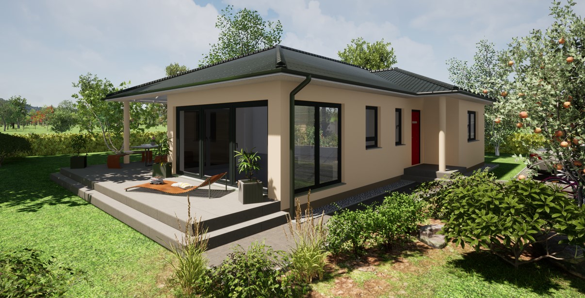 Der Baustil eines Bungalows bietet viele Vorteile. Es handelt sich um ein ebenerdiges Wohnkonzept, das barrierefreies Wohnen und maximale Flexibilität bietet. Der Bungalow überzeugt mit seinem kompakten Grundriss und einer harmonischen Verbindung von Innen- und Außenbereich. Diese Häuser sind geprägt durch offene Grundrisse, ohne Treppen und alle Zimmer ebenerdig, flexible Designoptionen und eine harmonische Integration in natürliche Umgebungen. Sie sind daher eine beliebte Wahl bei unseren Kunden und sind unsere Stärke.